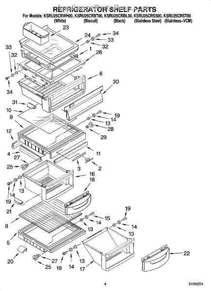 Parts for Kitchenaid KSRU25CRST00: 03 - Refrigerator Shelf Parts