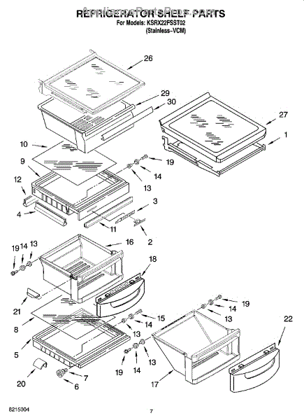 Parts for Kitchenaid KSRX22FSST02: 05 - Refrigerator Shelf Parts