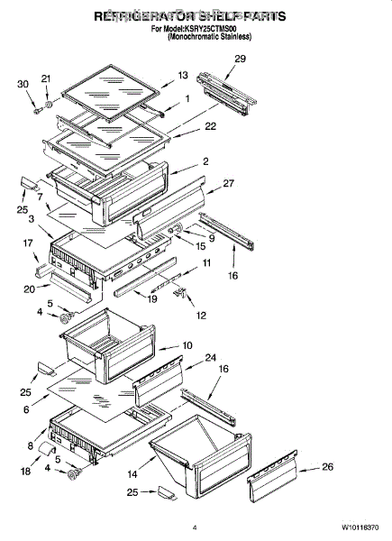 Parts for Kitchenaid KSRY25CTMS00: 03 - Refrigerator Shelf Parts