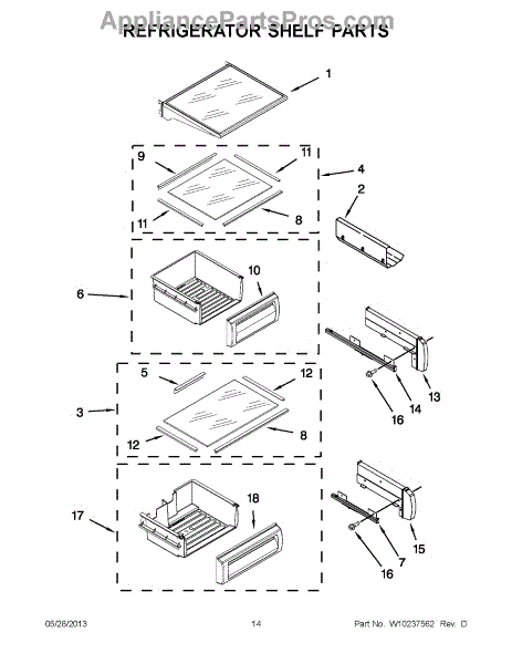A factory-style refrigerator shelf assembly that restores a stable, easy-to-clean storage surface for fresh-food compartments. Replaces broken, chipped or missing shelves so food sits level and spills are contained for faster cleanup. What it does