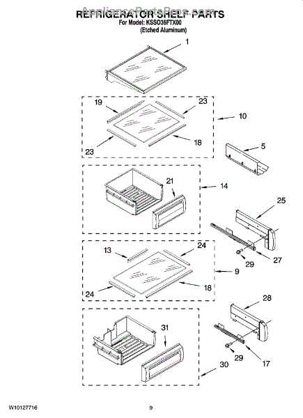 Parts for Kitchenaid KSSO36FTX00: 07 - Refrigerator Shelf Parts