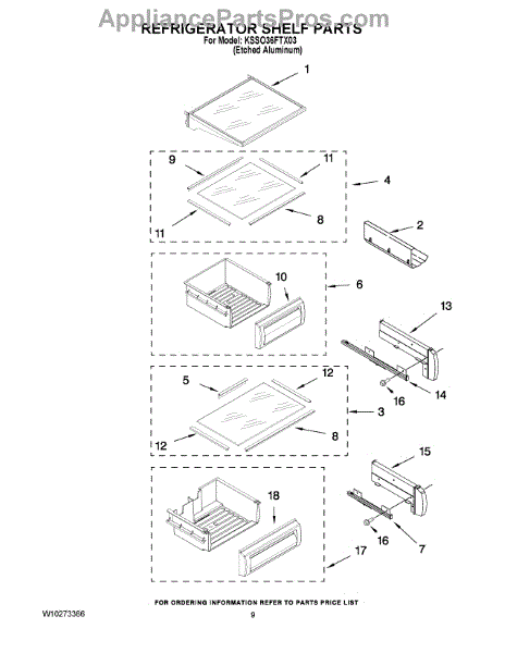 Parts for Kitchenaid KSSO36FTX03: 07 - Refrigerator Shelf Parts