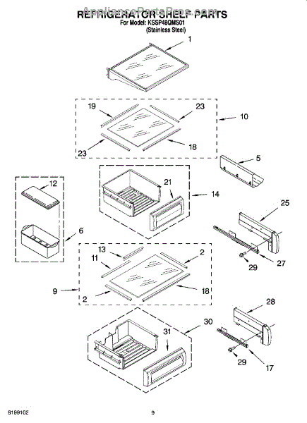 Parts for Kitchenaid KSSP48QMS01: 07 - Refrigerator Shelf Parts