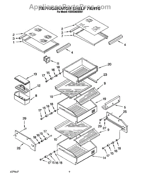 This egg carrier is a molded tray that holds and secures eggs inside the refrigerator so they stay organized and protected from rolling or breaking. It restores safe, tidy egg storage and fits the factory shelf location. What it does