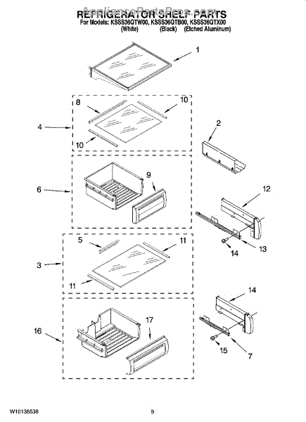 Parts for Kitchenaid KSSS36QTB00: 07 - Refrigerator Shelf Parts