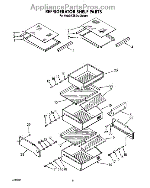 This screw is used to secure the handle end cap to the center of the door. The screw size measures 8-18 x 1/2 inches.