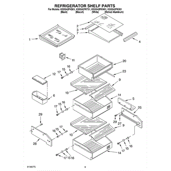 Parts for Kitchenaid KSSS42FKW01: 07 - Refrigerator Shelf Parts