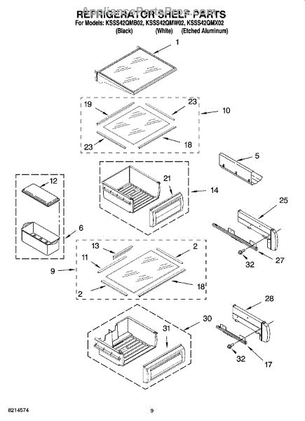 Parts for Kitchenaid KSSS42QMW02: 07 - Refrigerator Shelf Parts