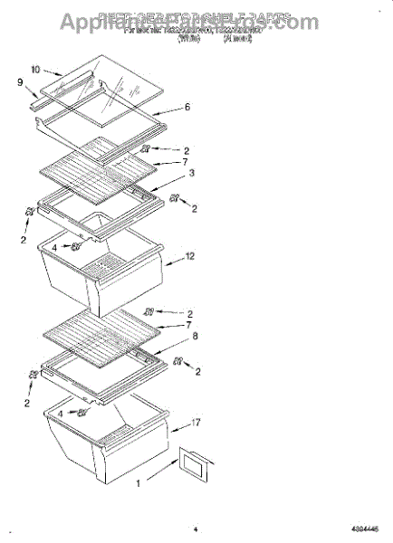 Parts for Whirlpool TS22AQXDN00: 03 - Refrigerator Shelf Parts