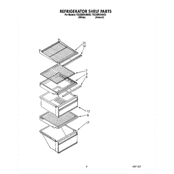 Parts for Whirlpool TS22BRXAW00: 04 - Refrigerator Shelf Parts