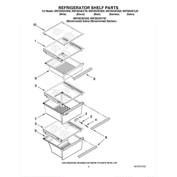 Parts for Whirlpool WSF26D3EXW00: 03 - Refrigerator Shelf Parts
