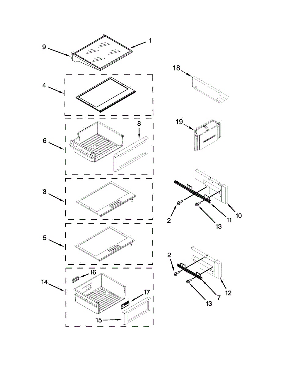 This glass shelf assembly replaces a broken or missing refrigerator shelf to restore stable storage and visibility for foods. Tempered glass provides a flat, easy-to-clean surface that helps keep items organized and contained. What it does