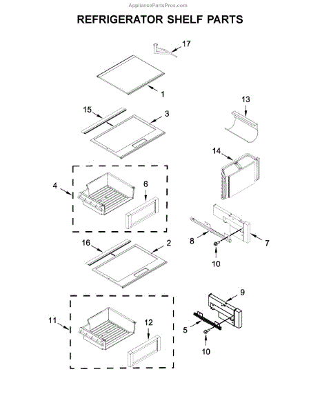 This glass shelf assembly replaces a broken or missing refrigerator shelf to restore stable storage and visibility for foods. Tempered glass provides a flat, easy-to-clean surface that helps keep items organized and contained. What it does
