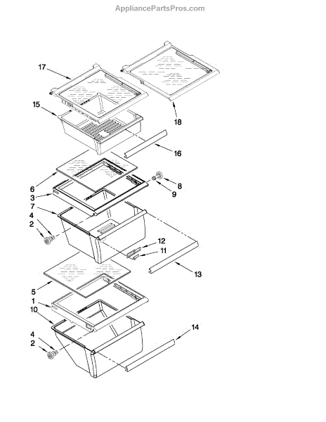The Snack Pan Shelf is an OEM part for Whirlpool refrigerators. It provides an additional level of storage space on the inside. The shelf is designed to fit securely on the side walls of the fridge cavity measuring 18 inches wide by 18-1/2 inches deep. If you need a shelf with a curved front, order WPW10276348. Symptoms of a bad snack pan shelf include: