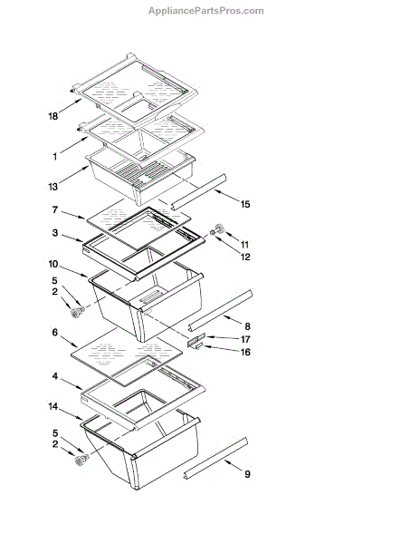 Causes of a bad shelf can be normal wear and tear over time from repeated removal and washing. Accidental drops or impact damage may also affect structural integrity. This OEM Whirlpool part can also be used on Maytag, KitchenAid, Jenn-Air, Amana, Magic Chef, Admiral, Norge, Roper, and Kenmore/Sears brand appliances.