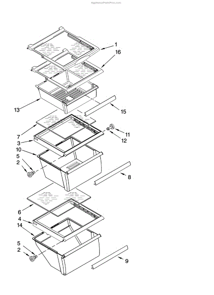 Causes of a bad shelf can be normal wear and tear over time from repeated removal and washing. Accidental drops or impact damage may also affect structural integrity. This OEM Whirlpool part can also be used on Maytag, KitchenAid, Jenn-Air, Amana, Magic Chef, Admiral, Norge, Roper, and Kenmore/Sears brand appliances.
