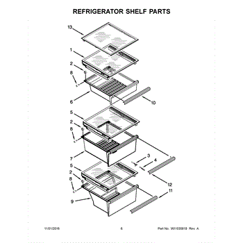 This refrigerator pan cover assembly forms the shelf surface above a drawer and supports the drawer's movement. Replacing a damaged cover restores a level storage surface and smooth, reliable drawer alignment.