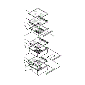 This refrigerator pan cover assembly forms the shelf surface above a drawer and supports the drawer's movement. Replacing a damaged cover restores a level storage surface and smooth, reliable drawer alignment.