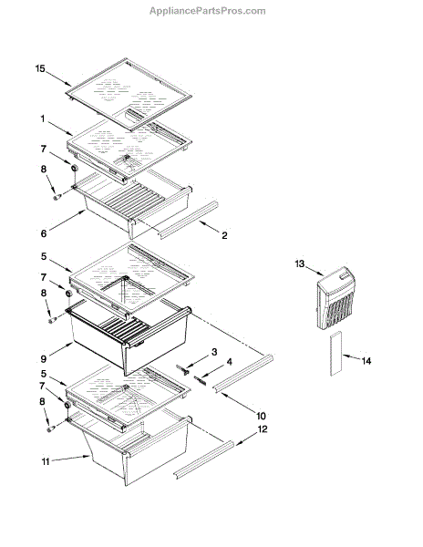 The Crisper Pan is an OEM replacement part for Whirlpool refrigerators. It is a component located directly behind the evaporator coil that helps evenly distribute cold air from the coil throughout the refrigerator and freezer compartments.
