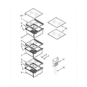 This pan cover assembly is the shelf frame that sits above the refrigerator's lower drawers. It restores a sturdy surface and smooth drawer operation when the original cover is cracked, warped, or missing.