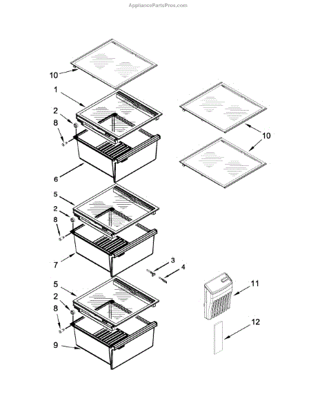 This replacement pan cover restores the shelf/cover above a refrigerator drawer, providing a stable surface for items and proper support for the drawer below. Use it to replace a cracked, warped, or broken cover to keep storage organized.