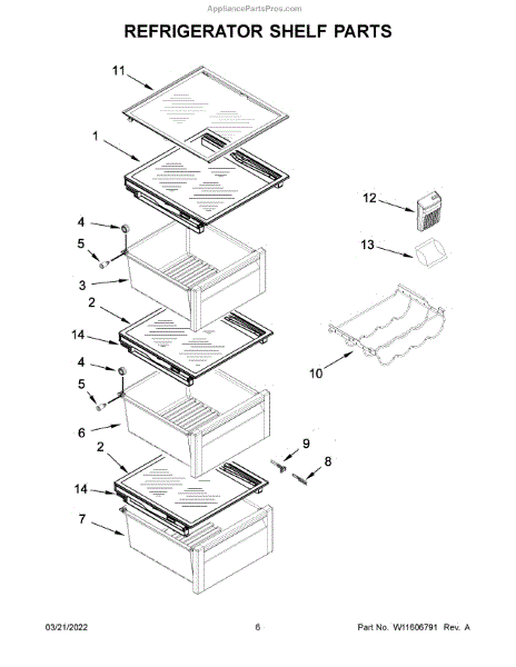 Parts for Kitchenaid KRSF705HPS04: Refrigerator Shelf Parts