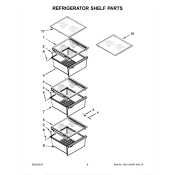 The Snack Pan is an OEM part for Whirlpool refrigerators. This part stores snacks and other small food items, providing an organized and accessible storage solution within the refrigerator. The pan measures approximately 17.25" wide at the front, 20" long, and 5" high.