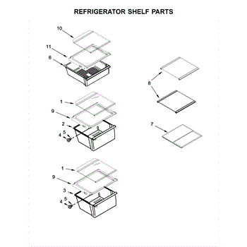 Replacement glass shelf for side-by-side refrigerators. Installs in the fresh food compartment for organized storage. Needed when original is cracked or broken.