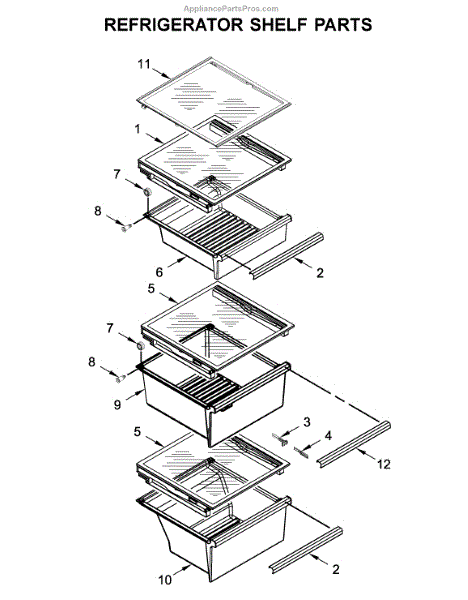 Replace the cracked, warped, or broken pan cover that forms the shelf above your refrigerator crisper drawer. Slides in easily to restore support.