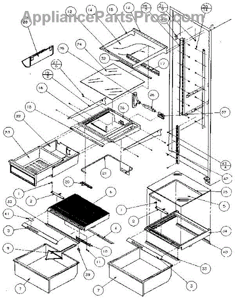 Parts for Amana 36068-P1122002W: Refrigerator Shelving And Drawers Parts
