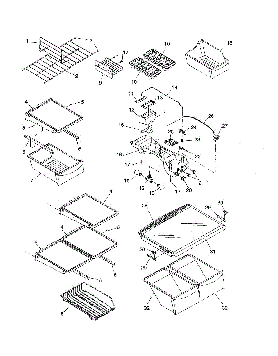 Parts for Amana ART2107BW-PART2107BW0: Refrigerator Shelving And Light Parts
