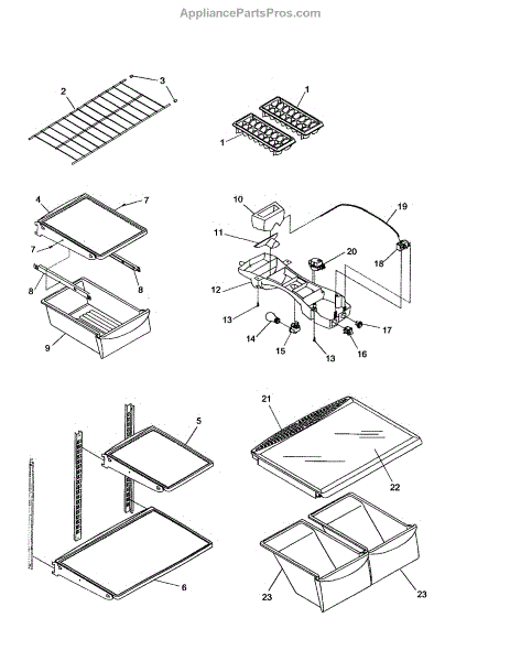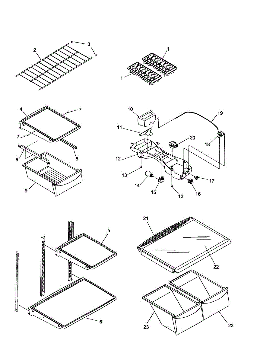 Parts for Amana DRT1802BC-PDRT1802BC0: Refrigerator Shelving / Light Parts