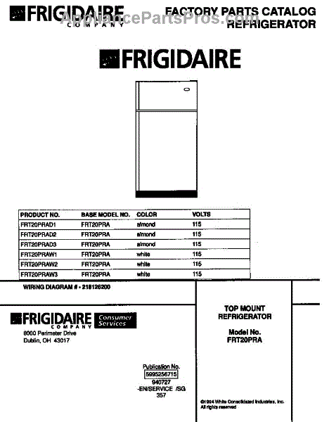 Parts for Frigidaire FRT20PRAW2: 01 - Refrigerator, Top Mount Parts