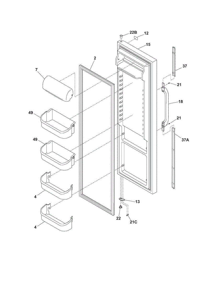 This outer refrigerator door replaces a damaged or dented exterior door panel to restore appearance and a proper seal. It provides a finished exterior surface and support for hinges and handles. What it does: