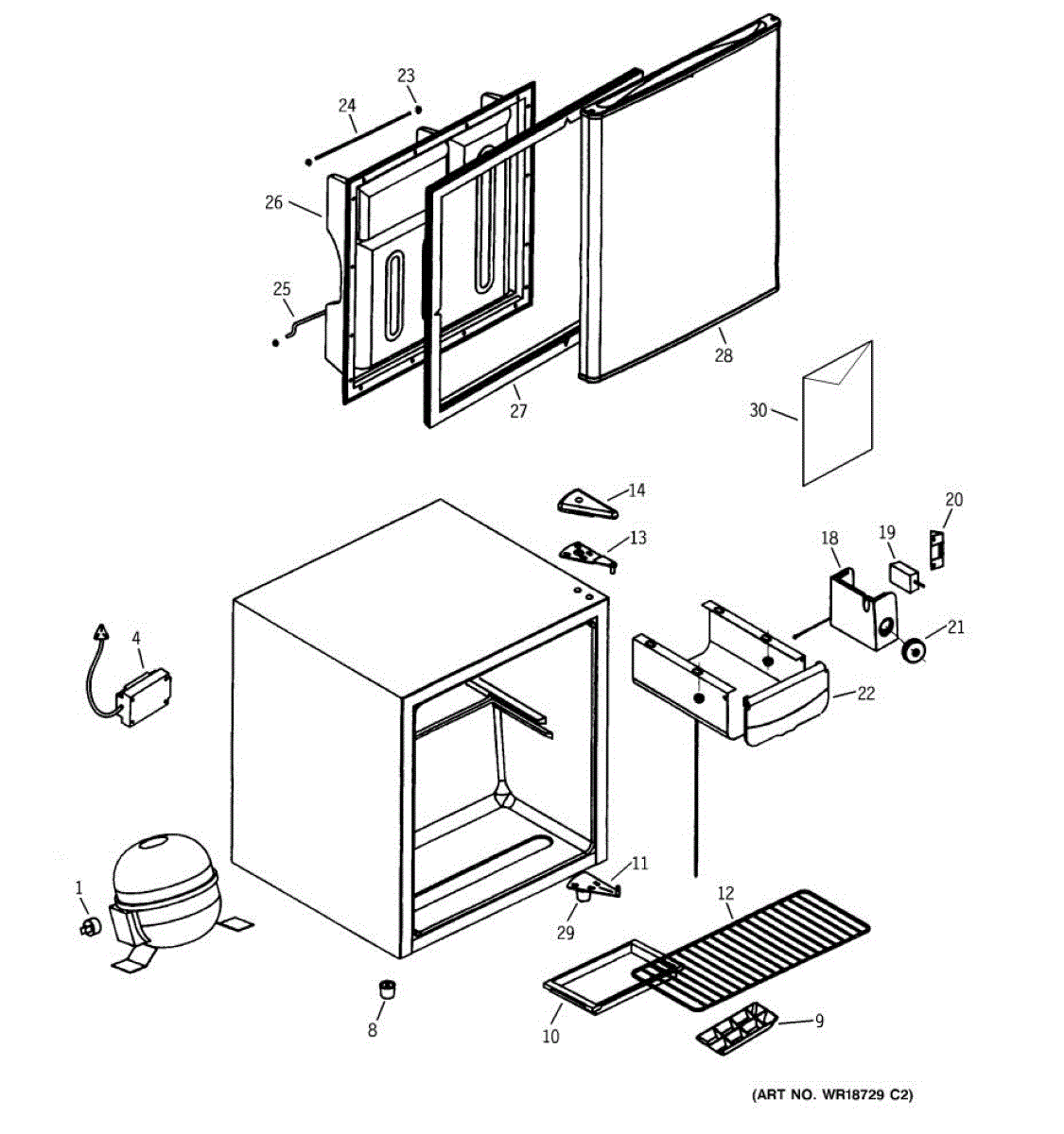 Supplies electrical power from wall outlet to refrigerator. Replace this cord if cut, frayed, overheated, or damaged to restore safe electrical connection.
