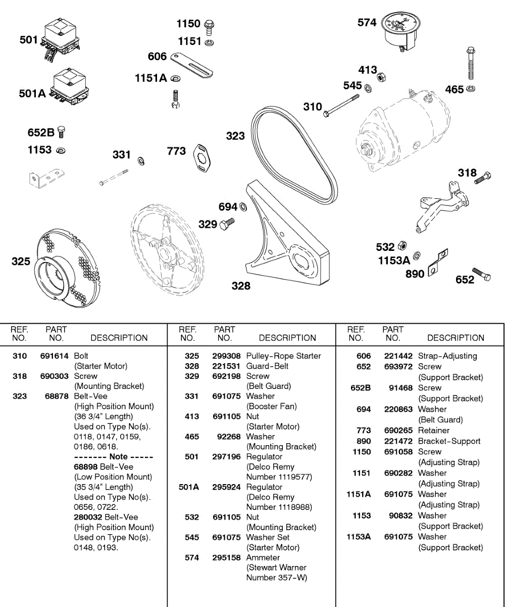 Parts for Briggs & Stratton 243431-1133-05: Regulator, V-Belt, Bracket Parts