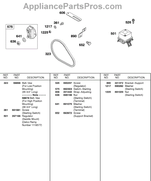 Parts for Briggs & Stratton 326431-0322-99: Regulator, Vee Belt Parts