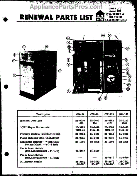 Parts for Amana OW140VA: Renewal Parts List Parts