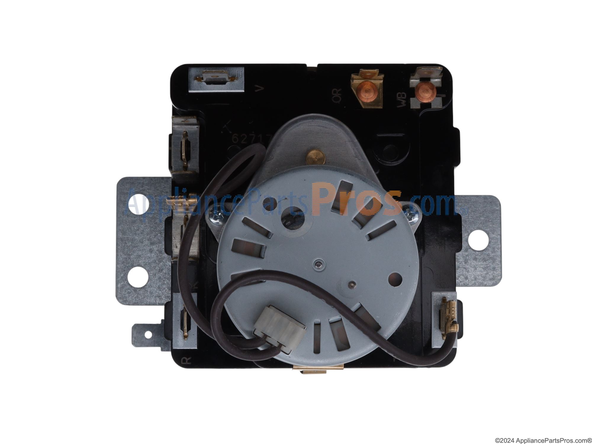 The Timer is an OEM component for Whirlpool electric dryers. It is the electronic component responsible for regulating preset drying cycles and automatic shutoff functions according to manufacturer specifications.