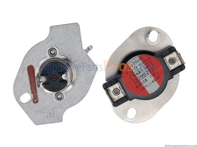 This internal-bias thermostat regulates dryer drum temperature by cycling the heat on and off, helping maintain consistent drying performance and protect against overheating.