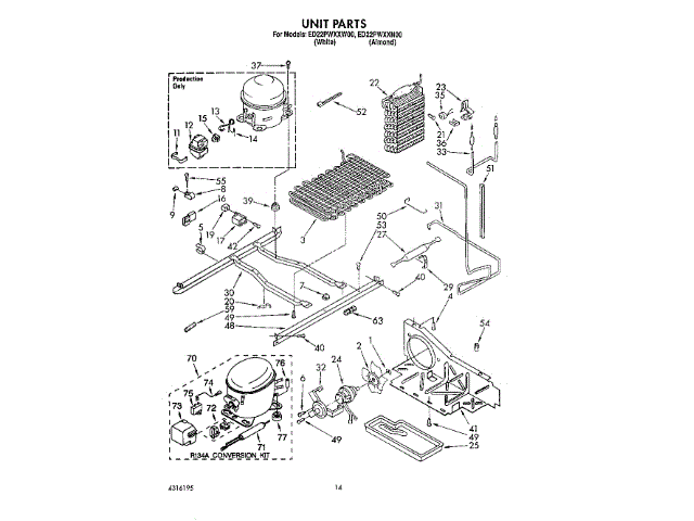 Parts for Whirlpool EV130NXRW0