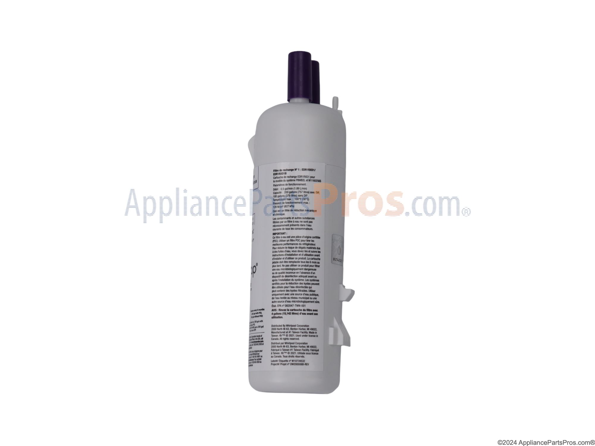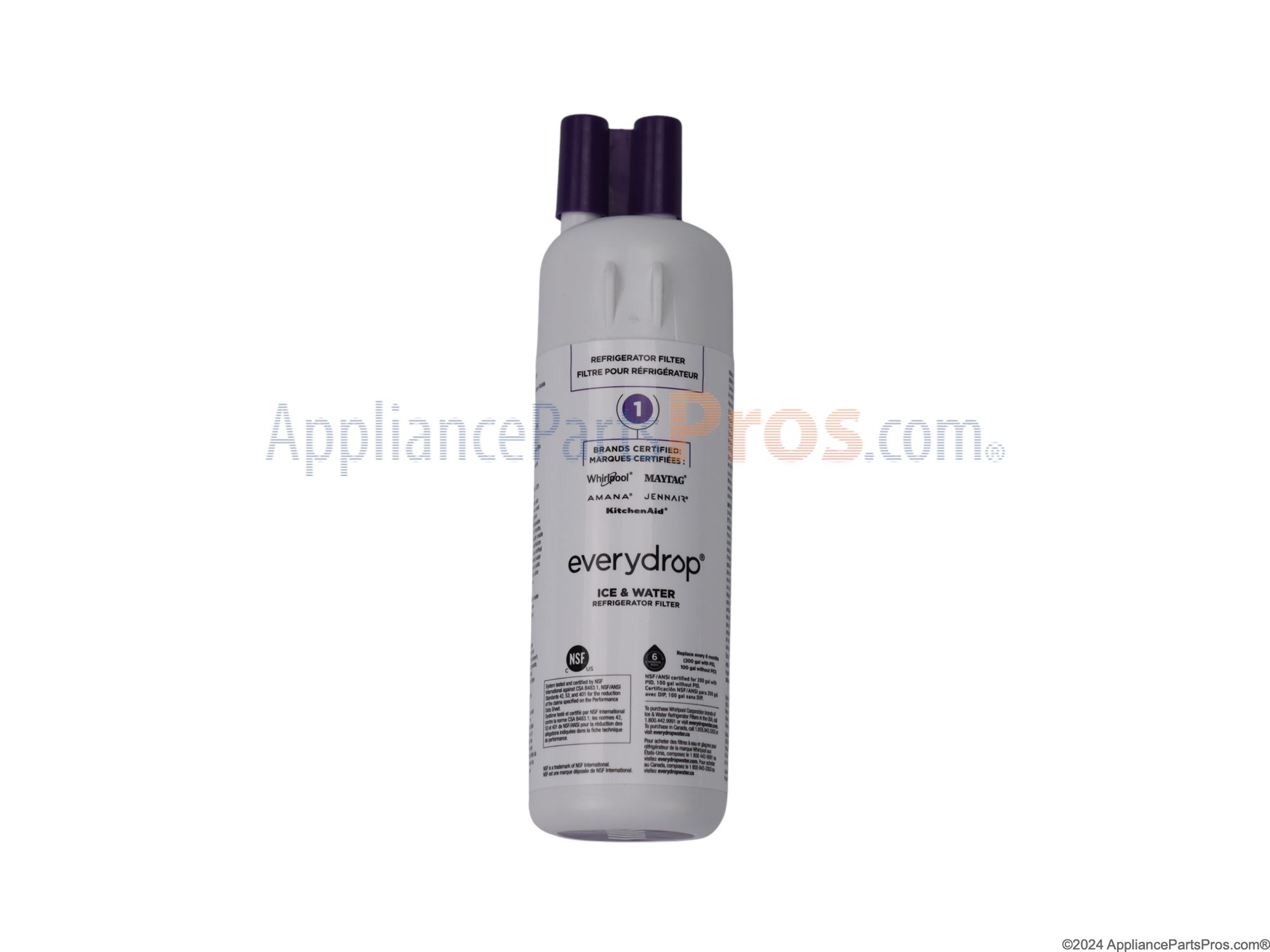 The Whirlpool EveryDrop Ice and Refrigerator Water Filter 1 is an OEM replacement part for Whirlpool refrigerators. This filter works to remove small particles from water to ensure clean, great-tasting ice and drinking water directly from the refrigerator door. Measuring approximately 2.50 x 2.50 x 8.69 inches, this filter is easy to install.