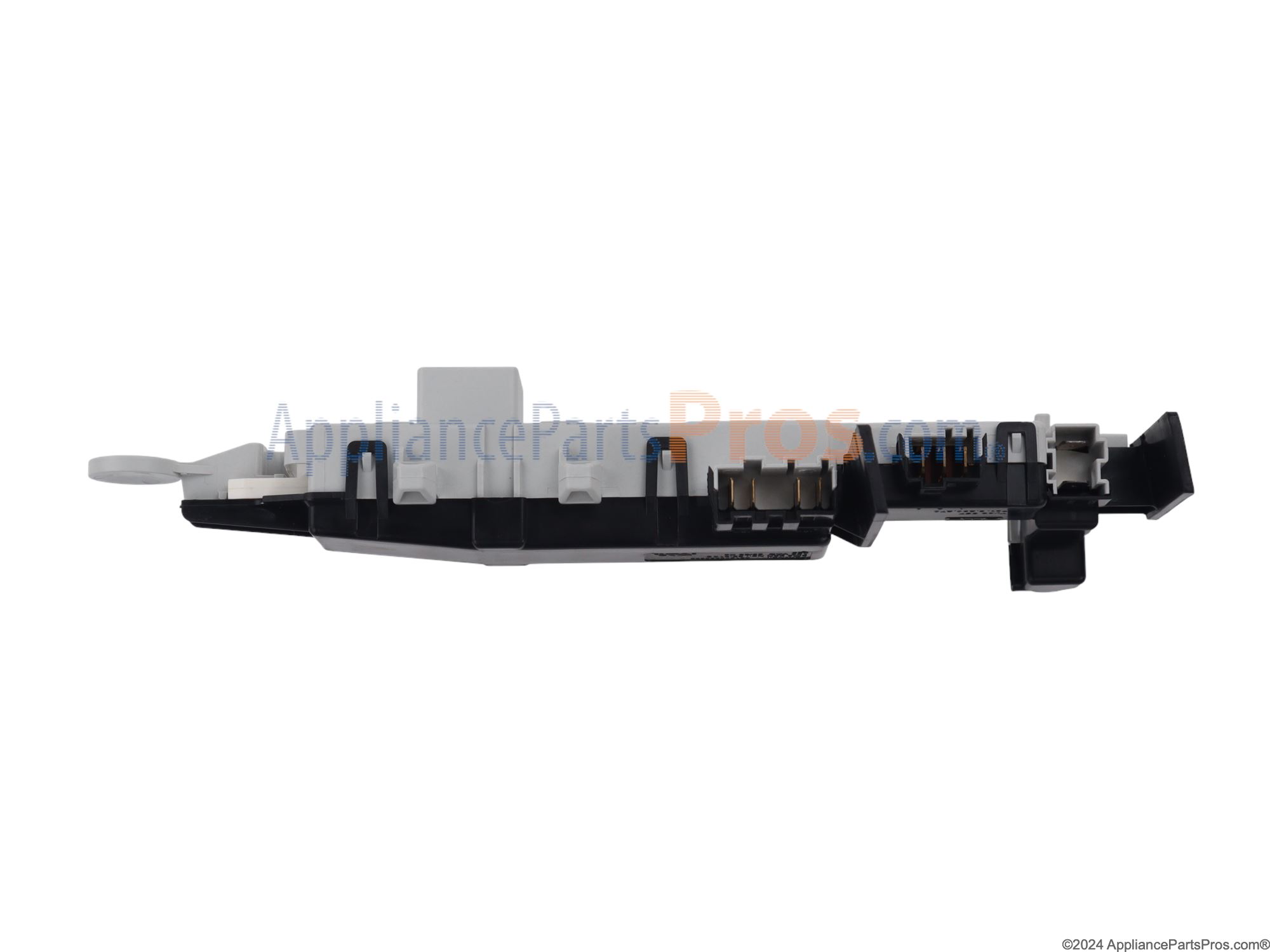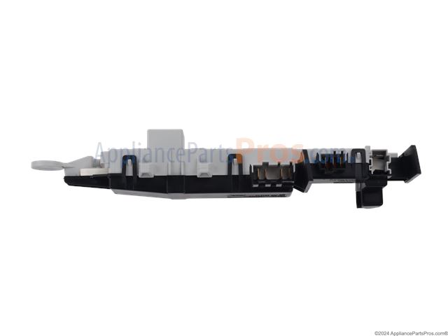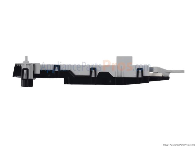 The Door Switch Assembly is an OEM part for Whirlpool washing machines. This assembly detects whether the washer door is open or closed, allowing the machine to start or stop the washing cycle accordingly.