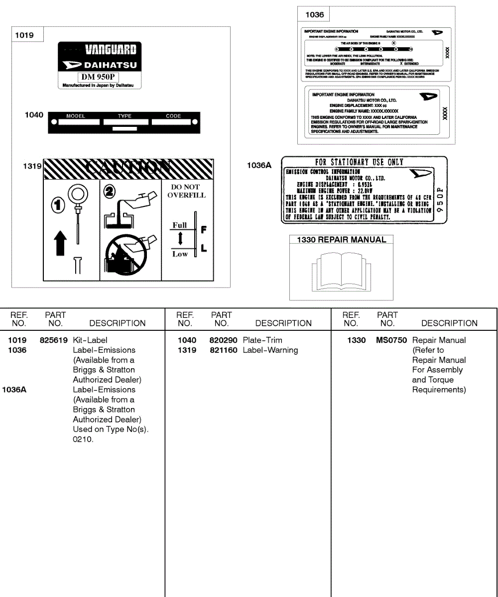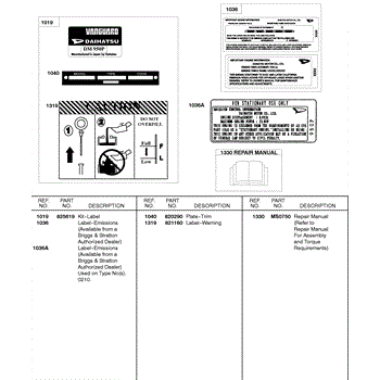 Parts for Briggs & Stratton 584447-0210-E2: Repair Manual, Label Kits Parts