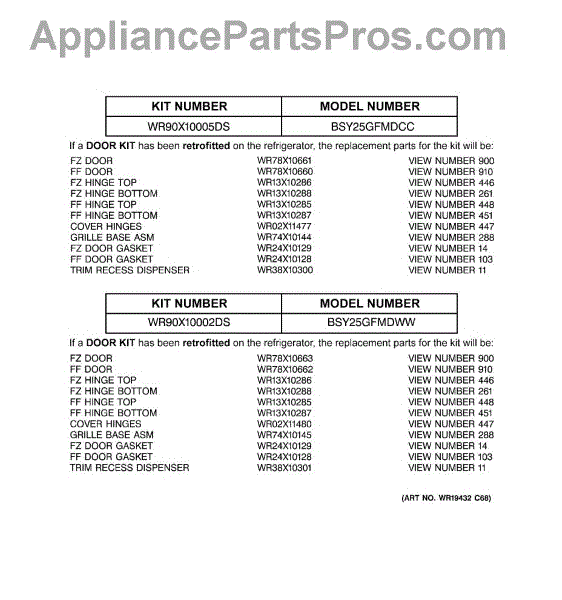Parts for Ge BSY25GFMDWW: 03 - Replacement Parts List Parts