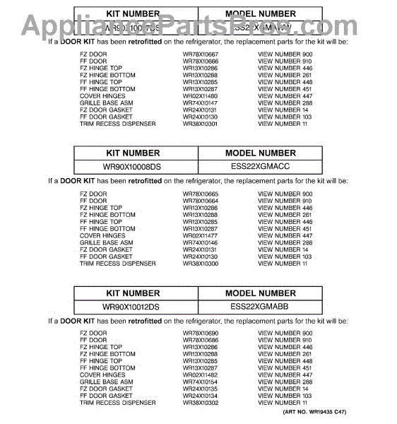 Parts for Ge ESS22XGMABB: 03 - Replacement Parts List Parts