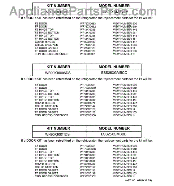 Parts for Ge ESS25XGMBBB: 03 - Replacement Parts List Parts