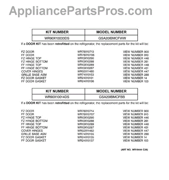 Parts for GSA20IBMCFWW