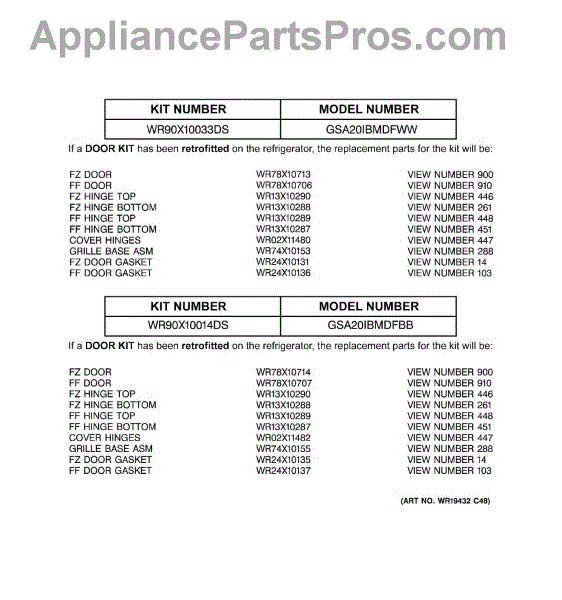Parts for GSA20IBMDFWW