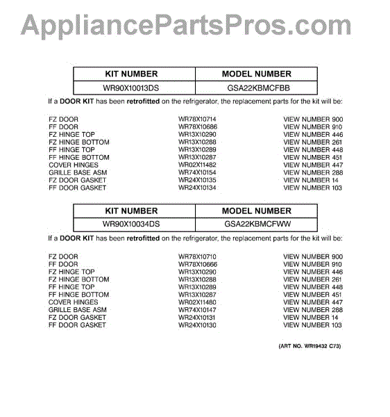 Parts for Ge GSA22KBMCFWW: 02 - Replacement Parts List Parts